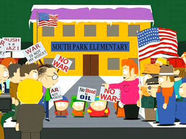 Cartman: This country was founded by some of the smartest thinkers the world has ever seen. And they knew one thing: that a truly great country can go to war, and at the same time, act like it doesn’t want to. You people who are for the war, you need the protesters. Because they make the country look like it’s made of sane, caring individuals. And you people who are anti-war, you need these flag-wavers, because, if our whole country was made up of nothing but soft pussy protesters, we’d get taken down in a second. That’s why the founding fathers decided we should have both. It’s called having your cake and eating it too.