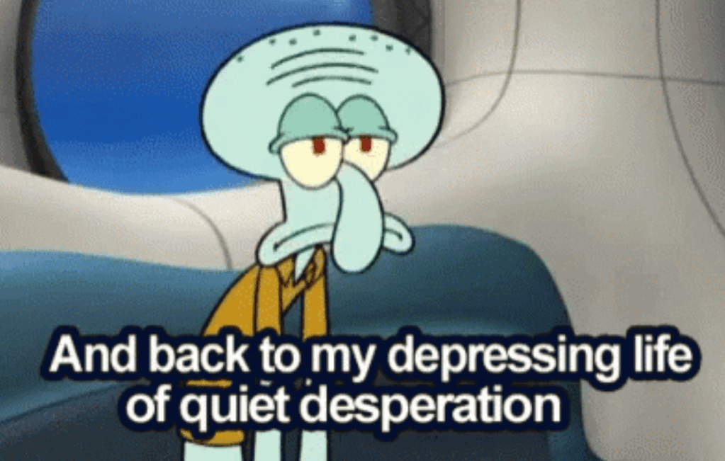 Squidward: And back to my depressing life of quiet desperation.